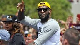 | LeBron's hometown Akron celebrates his NBA title with Cavs LeBron James steps on-stage with the NBA basketball championship trophy during his hometown celebration in Akron, Ohio, Thursday, June 23, 2016 ...