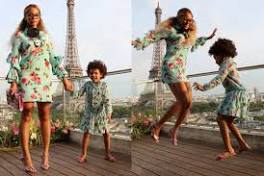 Beyoncé and Blue Ivy Wore Matching Gucci Dresses in Paris Beyoncé's turquoise piece with tiered ruffle sleeves was paired with a black collar brooch, cat-eye frames, a hot pink envelope clutch, and open-toed ...
