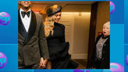 Starstruck woman photobombs Beyonce and Jay-Z Let's get to it. We grin with Jay Z and Beyonce. Wow, the power couple stepping out in style at Clive Davis' pregrammy gala. Look at the expression on that lady's face. She can't believe he's in the company of music royalty. I love that picture. Honestly, I would have the same expression. Look at Beyonce.