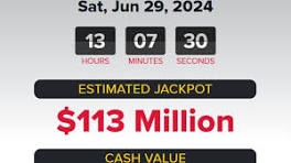 Powerball jackpot at $113 million for Saturday, June 29, 2024 lottery drawing - Delaware Online Since there was no grand prize winner from Wednesday's drawing, the jackpot for Saturday rose to $113 million with a cash value of $53.9 million.