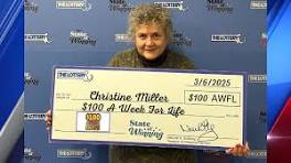 Greenfield woman wins weekly lottery payments of $100 for the rest of her life - WWLP Miller claimed her winning prize Thursday on the newly released scratch ticket, "$100 a Week for Life". Mass. residents celebrate big lottery wins in ...